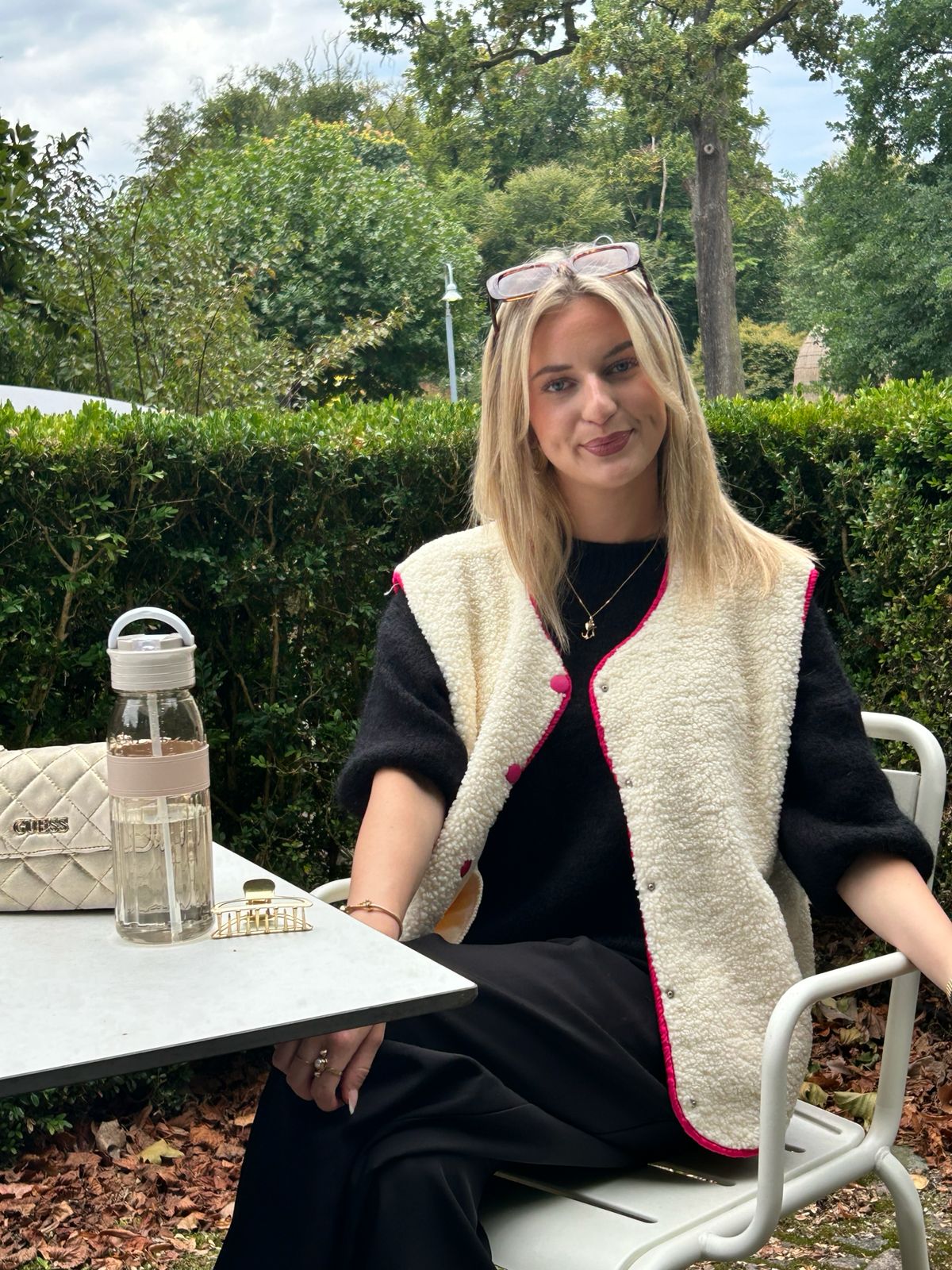 De Elise Borduur Vest is een speelse update van onze geliefde Elise-stijl. Gemaakt van zachte teddy stof met contrasterende geborduurde randen en bijpassende knopen voor een vrolijke touch. Perfect om te dragen over je favoriete T-shirts of truien — cozy, casual en vol karakter.
